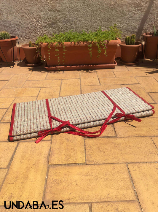 Tapete plegable de caña natural tejida a mano con ribete rojo
