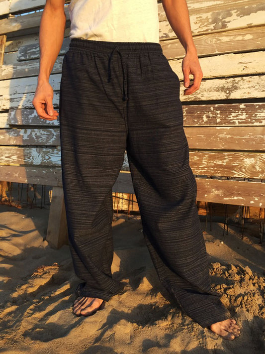 Pantalón Negro de algodón con cordón y patrón de línea