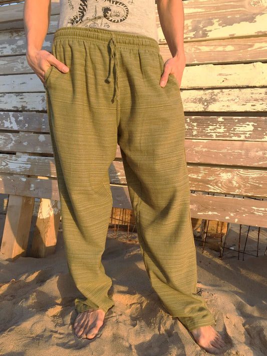 Pantalones Verde Oliva de algodón con cordón y patrón de línea